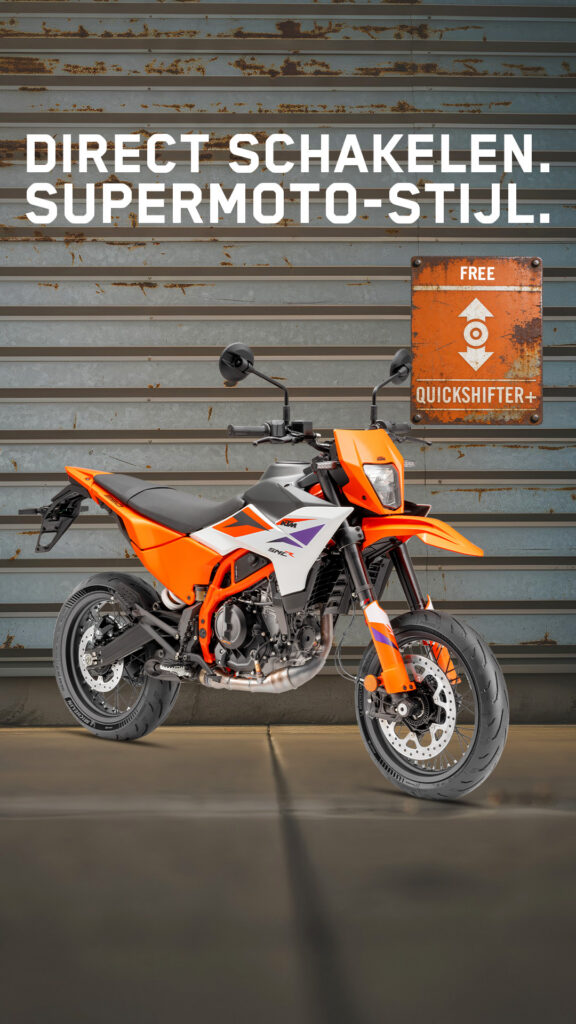 KTM opent de deuren voor nieuwe rijders én sportieve stadsrijders. Bij aankoop van een nieuwe KTM 125 SMC R of 390 SMC R modeljaar 2024 of 2025 krijg je tijdelijk de Quickshifter+ volledig gratis. Let op: deze actie loopt slechts tot en met 31 maart 2026 en geldt zolang de voorraad strekt.